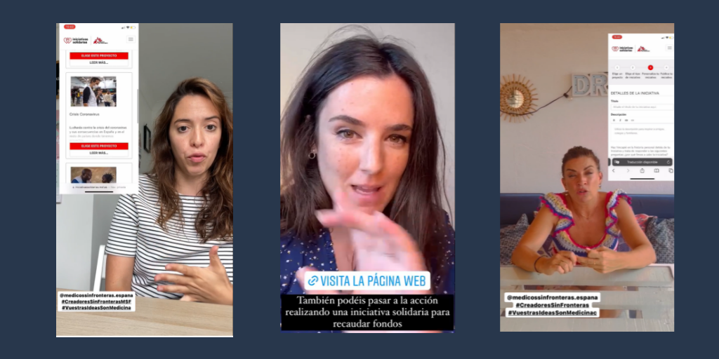 En el primer story, los influencers explicaron a la audiencia en qué consiste el proyecto “Creadores Sin Fronteras”. En el segundo story, los influencers explicaron como con las iniciativas solidarias es posible recaudar dinero para una causa de Médicos Sin Fronteras a través de las propuestas que se desarrollen en clase, además de mencionar ideas llevadas a cabo por otros colegios.